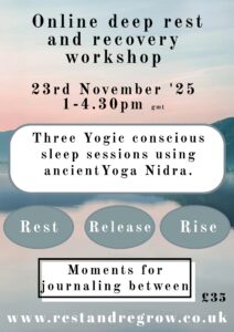 Rise – A longer Yoga Nidra practise, a chance to recover from daily life and implant some energy into where you want to give attention to in your life.