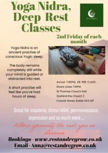 Yoga Nidra is an ancient practise of conscious Yogic sleep. The body remains completely still while your mind is guided/distracted into rest.