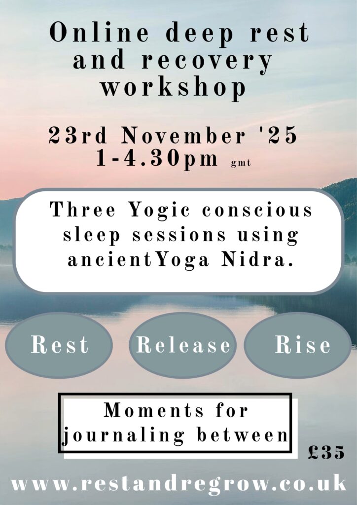 • A full afternoon of three Yoga Nidra sessions (Rest, Release and Rise)